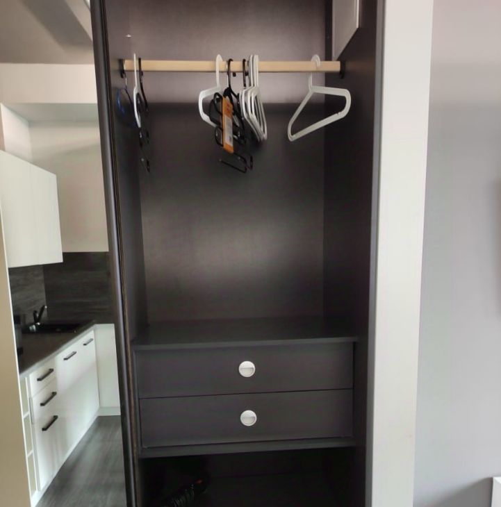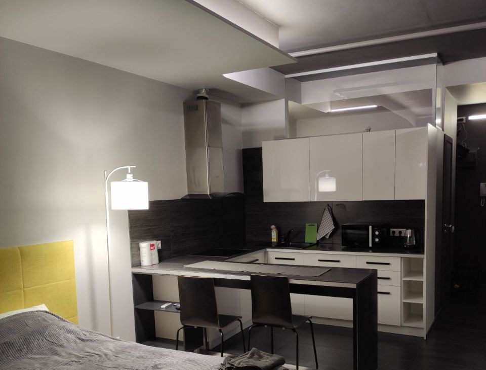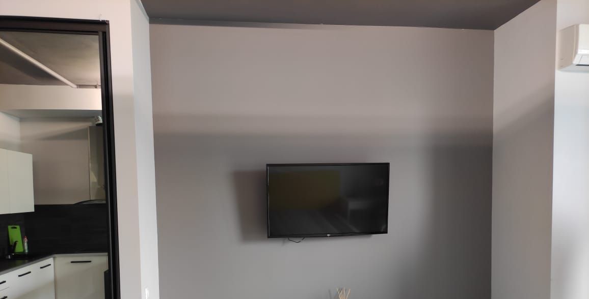 Квартира укомплектована всем необходимым для комфортного проживания: кондиционер, стиральная машина автомат, холодильник, варочная панель, микроволновая печь, двуспальная кровать, большой шкаф-купе. Под телевизором будет установлен новый белый пенал.