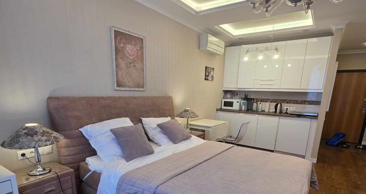 Сдаётся на длительный срок огромная стильная студия. Лучше этой квартиры в этом районе по такой приятной цене вы не найдете. Квартира для тех кто любит чистоту, комфорт и уют. В квартире имеется вся мебель и техника для вашего комфортного проживания. Развитая инфраструктура района Рядом с домом расположено все необходимое: