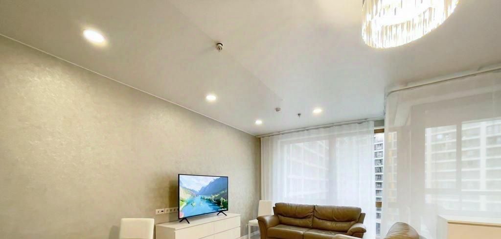 В квартире сделан современный евроремонт, что позволяет вам наслаждаться комфортом и уютом. Из мебели есть все необходимое как в комнате, так и на кухне. Квартира оснащена всей необходимой техникой: кондиционер, холодильник, посудомоечная и стиральная машины, телевизор. Совмещенный санузел оборудован ванной. Окна выходят во двор, поэтому вас не потревожит шум улицы.