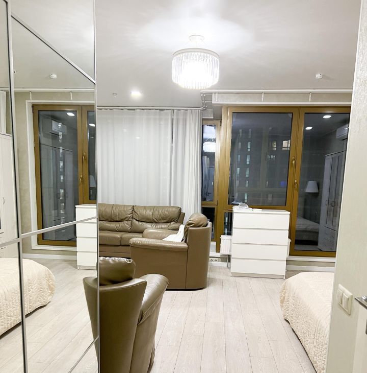 Сдается стильная студия в апартаментах! Общая площадь — 47 кв. м, жилая — 36 кв. м. Находится на 6 этаже 15-этажного монолитного дома, построенного в 2016 году. Высокие потолки 3 метра создают ощущение простора. Дом оснащен тремя пассажирскими лифтами и пандусом для удобства.