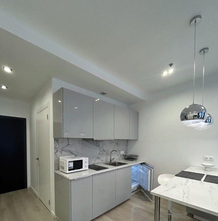 ЖК Лайнер. В пешей удаленности метро ЦСКА, ТЦ Авиапарк, парк Ходынское поле, ледовый дворец Мегаспорт . Студия с дизайнерским ремонтом, панорамным остеклением, с видом на улицу Микояна. Современный интерьер в светлых тонах , отделка материалом премиум класса, встроенная кухня с бытовой техникой, варочная панель, холодильник, , печь СВЧ, барный стол со стульями, вся необходимая мебель- раскладной диван, комод с ТВ, вместительный зеркальный шкаф-купе, совмещенный санузел с душевой , раковиной с зеркалом и подсветкой, стиральная машина. Рассмотрим любой срок аренды от двух месяцев до нескольких лет. Квартира полностью готова к заселению. Оперативный показ.