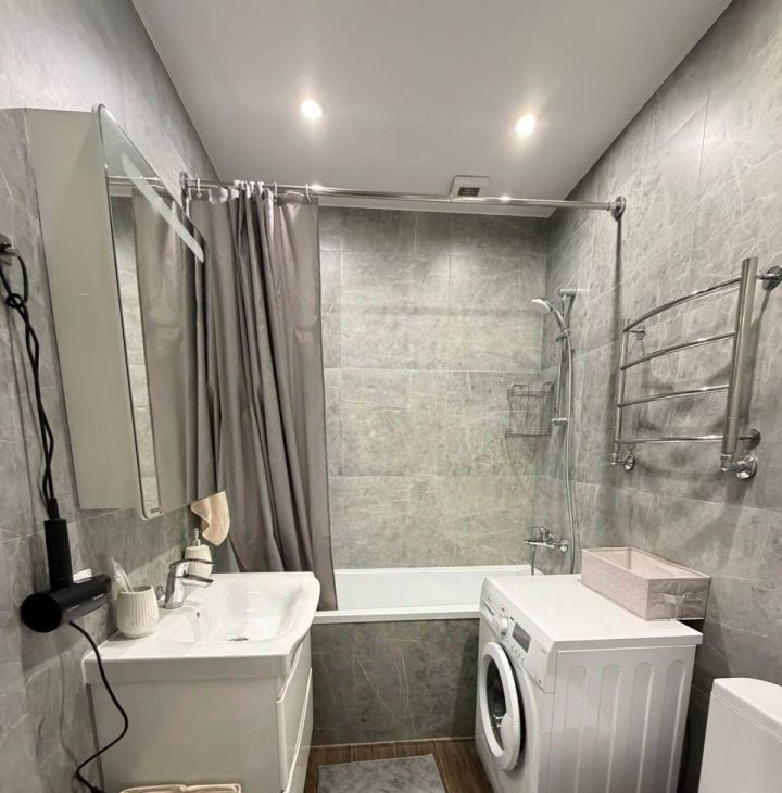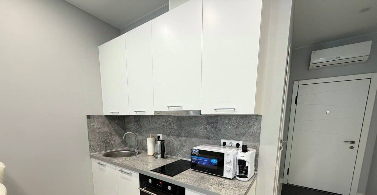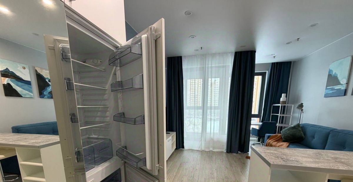 Апартаменты полностью укомплектованы мебелью и бытовой техникой. Есть всё необходимое для комфортного проживания — можно заезжать сразу, без дополнительных покупок.