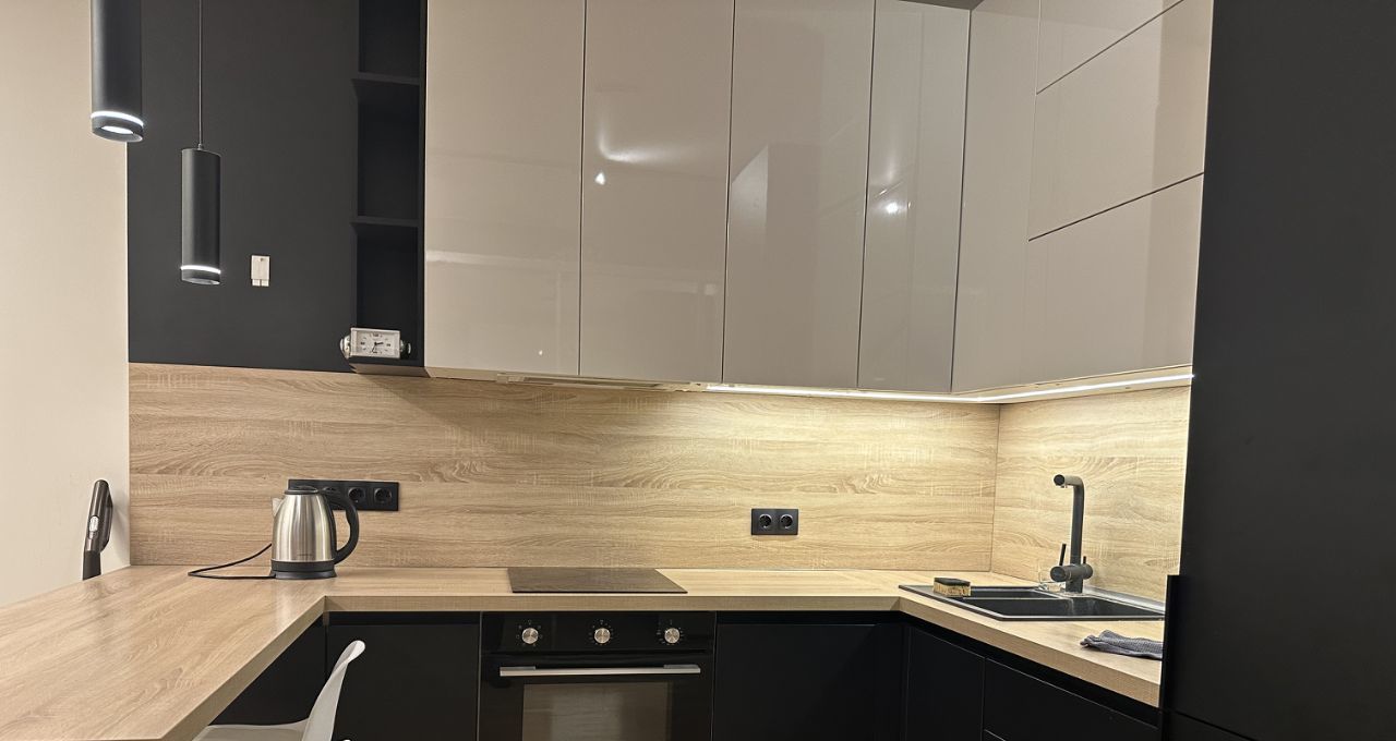 Кухня выполнена из качественных материалов с дорогой фурнитурой Blum.