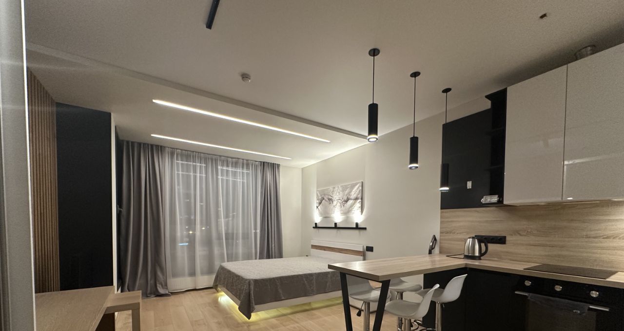 Сдается просторная студия с дизайнерским ремонтом 33 кв метра.