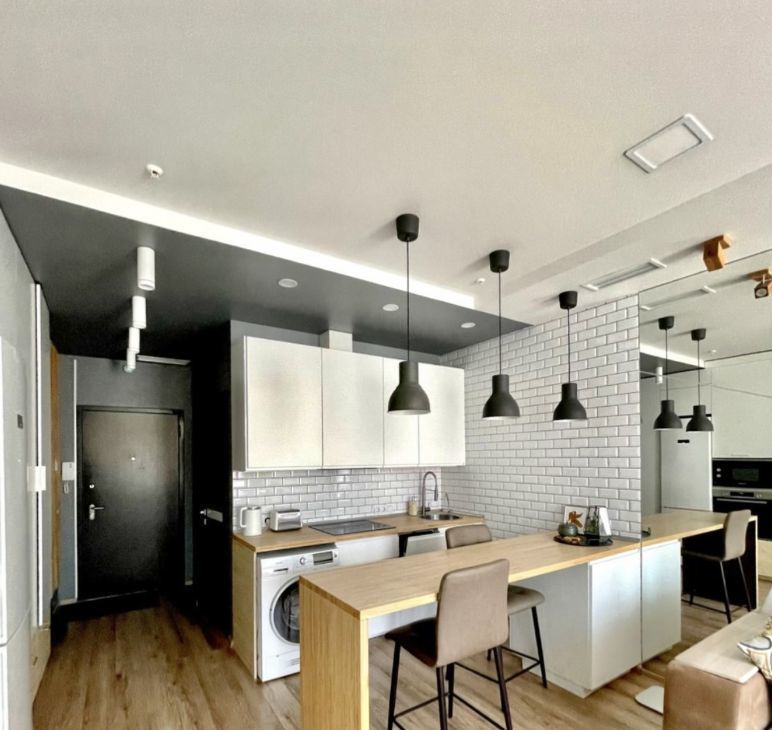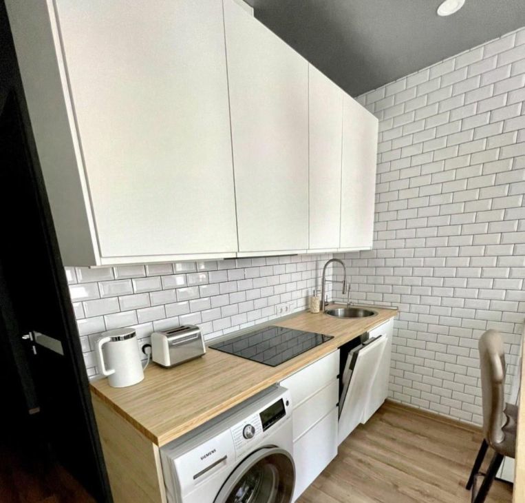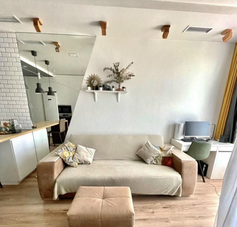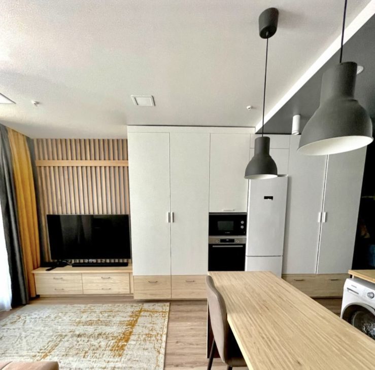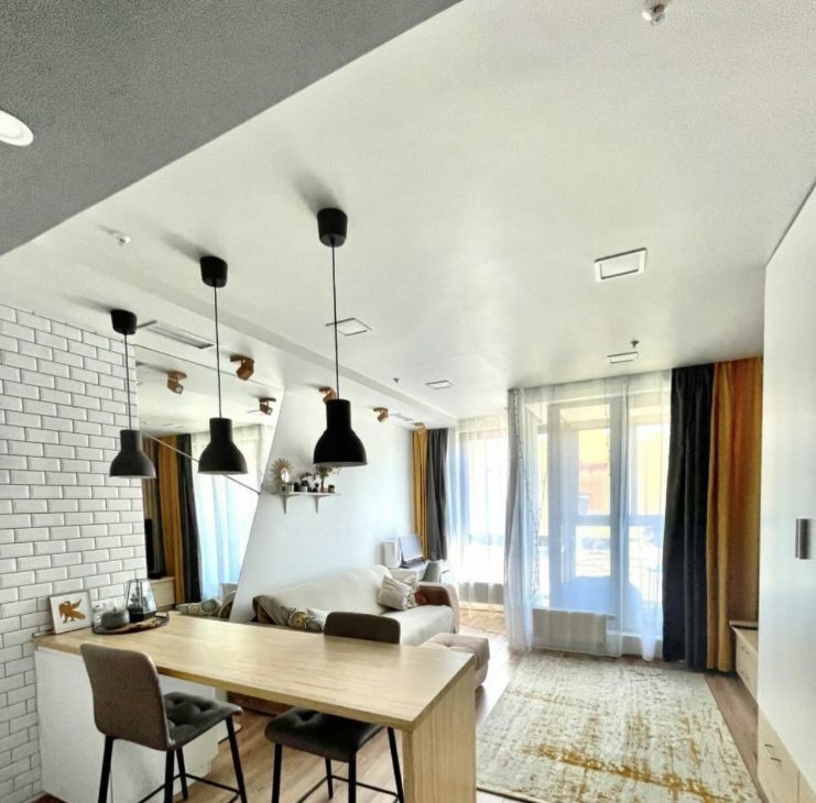 Студия в отличном состоянии, Новая современная мебель с доводчиками Mr Doors, качественно спланированное хранение, современная новая бытовая техника Bosch. Канальная скрытая система кондиционирования с режимами охлаждения и нагрева воздуха в студии, так же с декоративной подсветкой ТВ зоны.