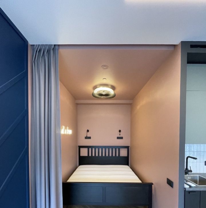 Планировка продуманная: выделенная полноценная спальная зона, кухня-гостиная, рабочее место, ванная, много мест хранения.
