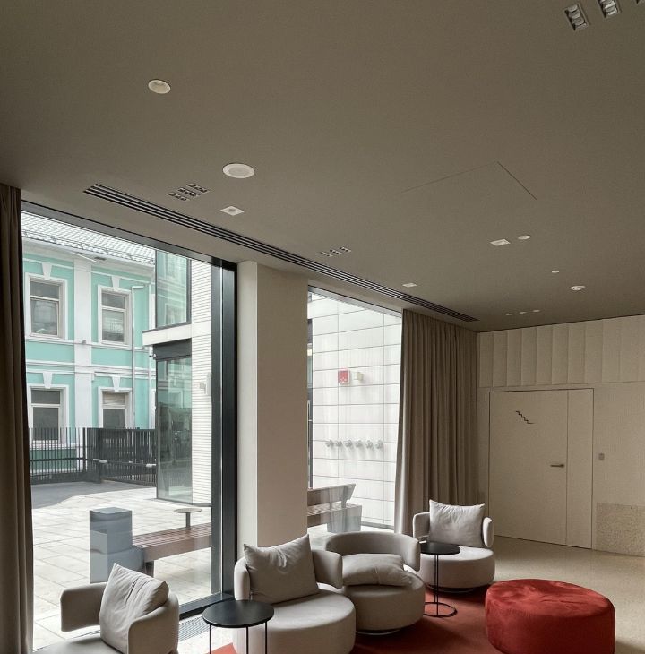 Club-style building with a good professional community - many IT and creative residents, calm atmosphere. Gated and secured 24/7 with concierge, underground parking available. Cafs and services are located inside the building.