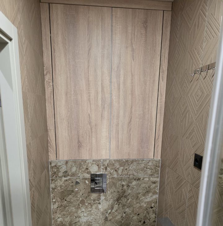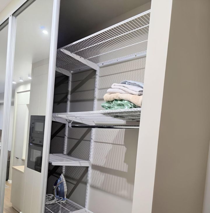 Просторная жилая зона площадью 20 м² оформлена в современном стиле. В квартире есть все необходимое для комфортного проживания: телевизор, стиральная машина с функцией сушки белья, микроволновка, духовой шкаф, варочная панель, встроенный холодильник, посудомоечная машина, фильтр для воды, чайник, утюг, посуда, сплит система и современная мебель. В прихожей вместительный шкаф купе.