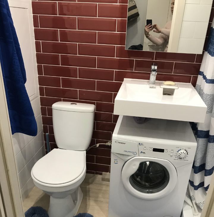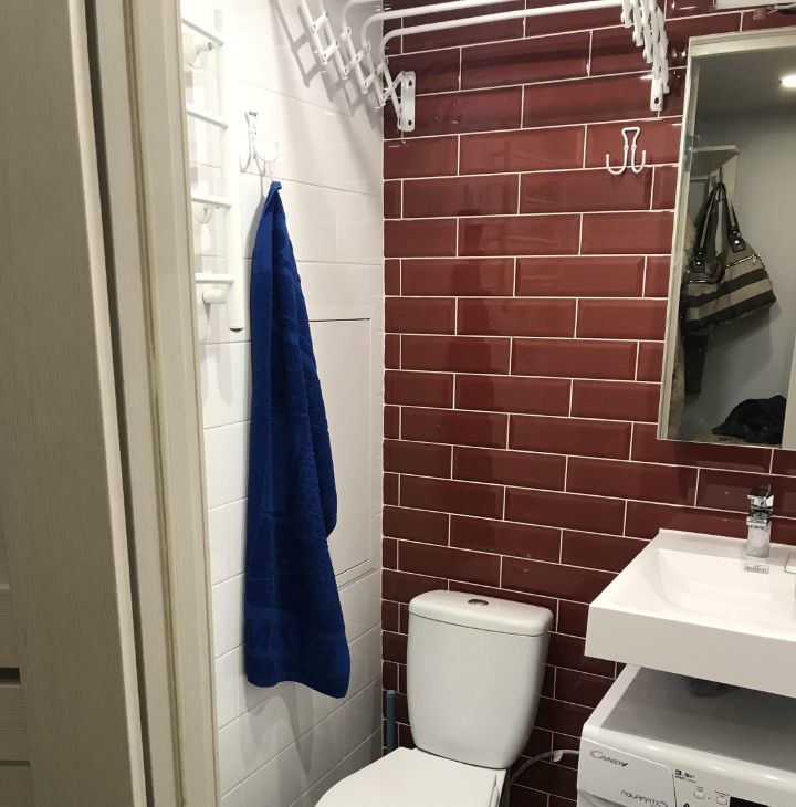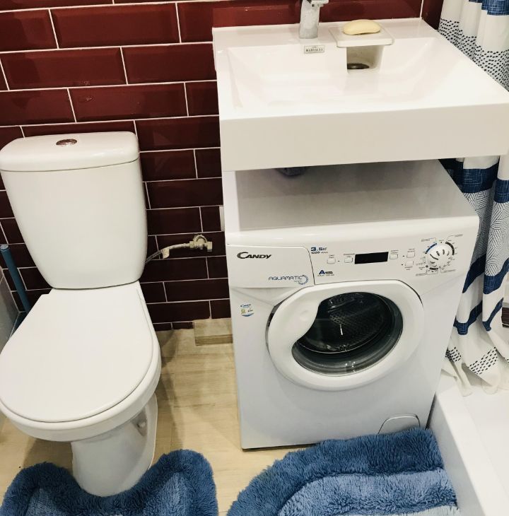 Санузел совмещен, стиральная машина (есть короткая программой стирки), сушилка для белья, полотенцесушитель.