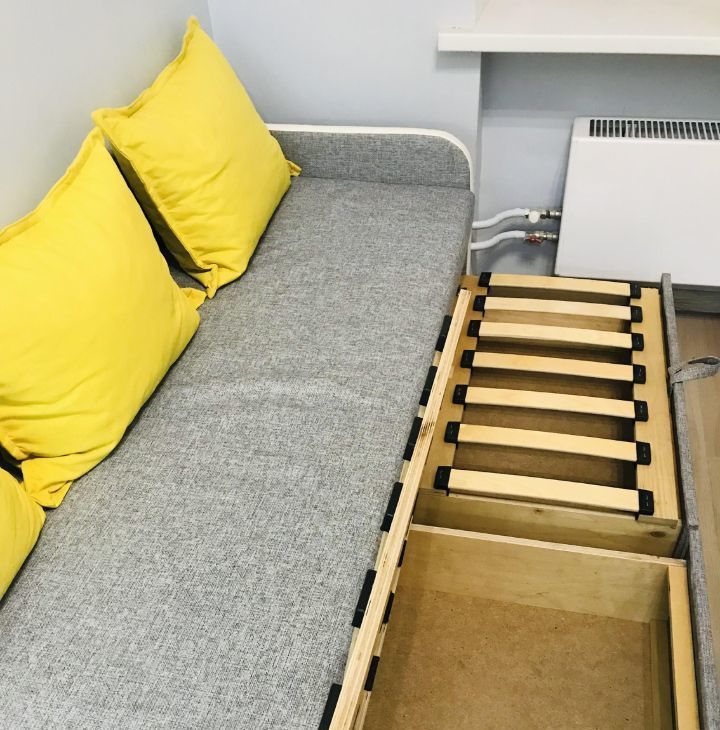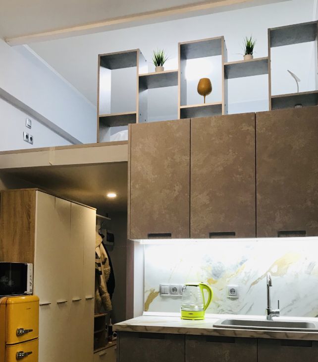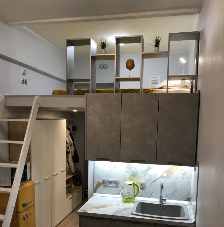 Современная, новая, стильная, теплая двухуровневая студия полностью меблирована и оснащена бытовой техникой в ЖК "Дом на Ивантеевской" (дом без лифта, но с широкими лестничными проемами и тремя входами в дом, презентабельная входная группа). Четыре полноценных спальных места: диван на первом уровне (с ящиками для хранения) и ортопедический большой удобный матрас 160х200см на втором уровне (есть наматрасник, подушки, покрывало), на окнах шторы блэкаут.