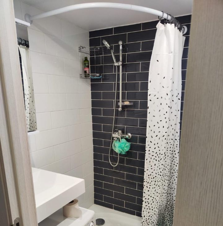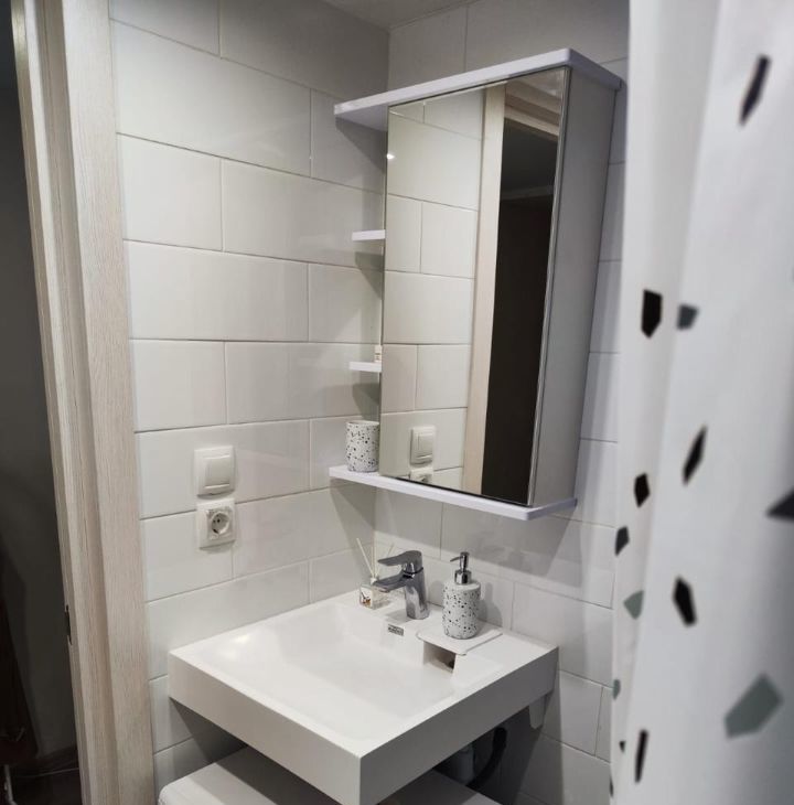 В квартире есть всё необходимое для комфортного проживания. Пространство грамотно организовано: есть мебель как на кухне, так и в жилой зоне. Квартира оснащена современной техникой: кондиционер, холодильник, телевизор, стиральная машина. Санузел совмещённый.