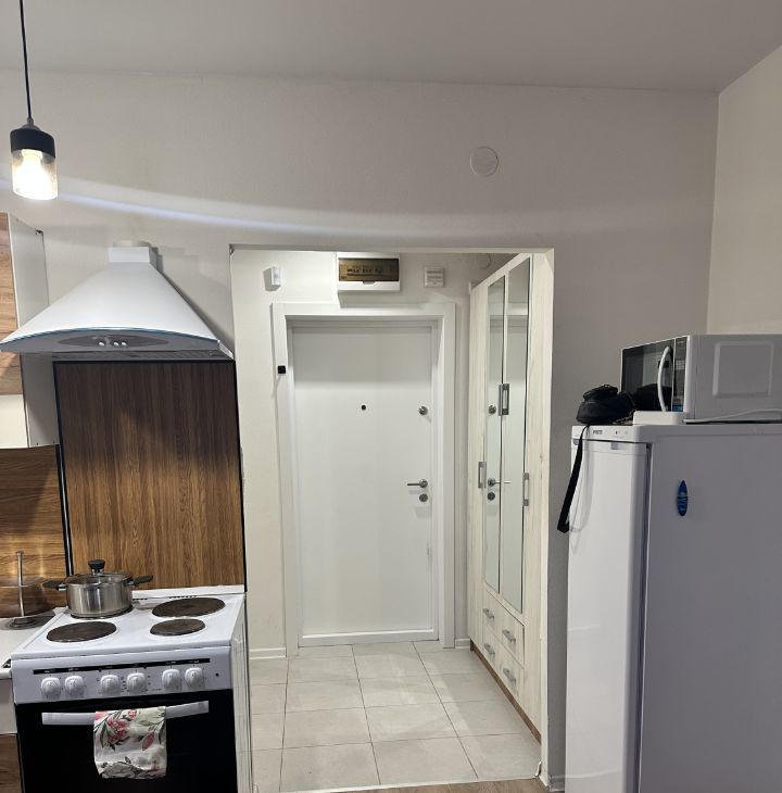 Жилая площадь — 24 кв.м., совмещенный санузел. В наличии вся необходимая мебель: шкафы и удобный диван. Кухня оборудована современной техникой, включая холодильник и плиту. Для удобства гостей предусмотрены открытая парковка во дворе и спортивная площадка.