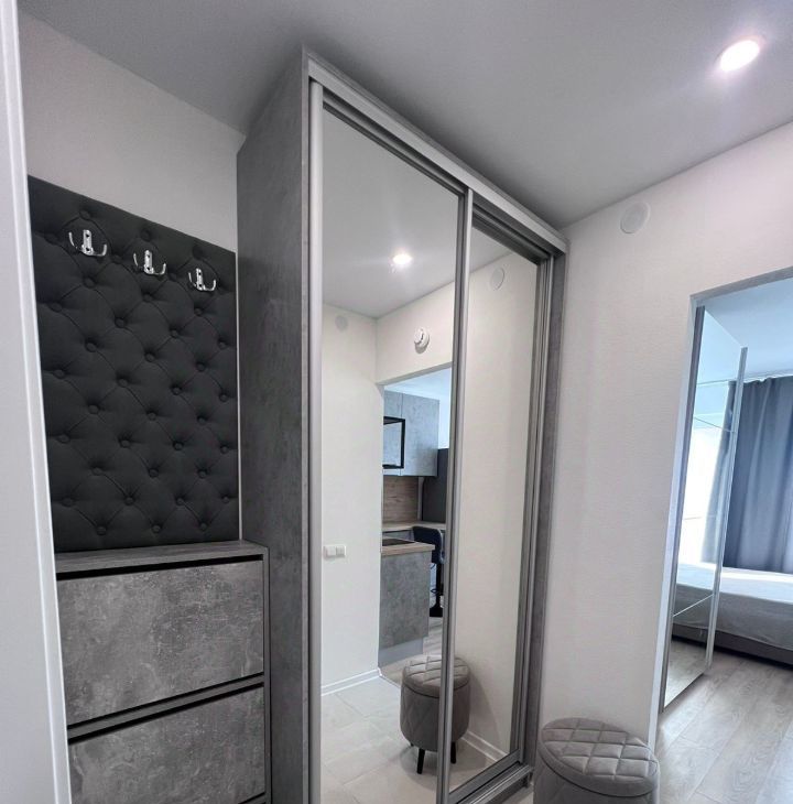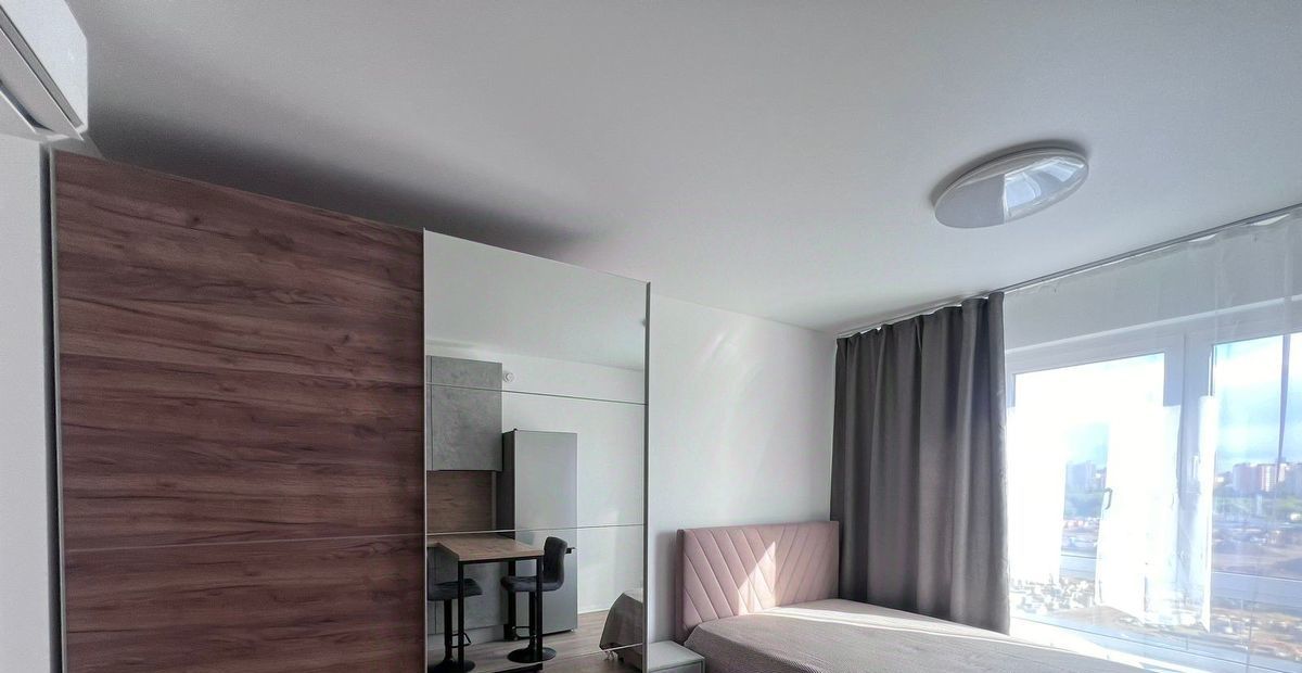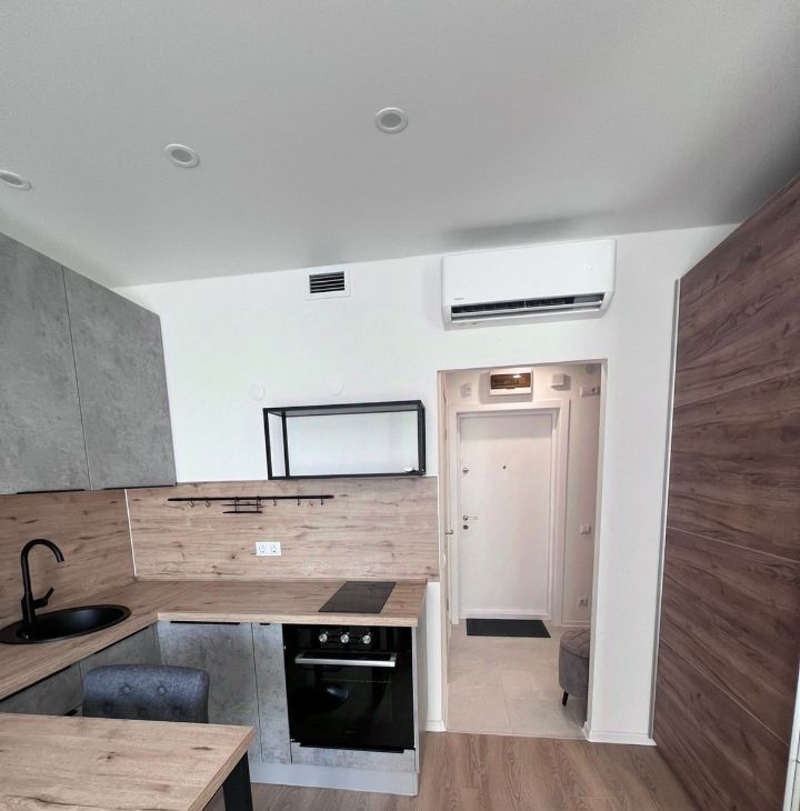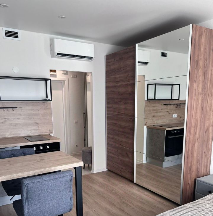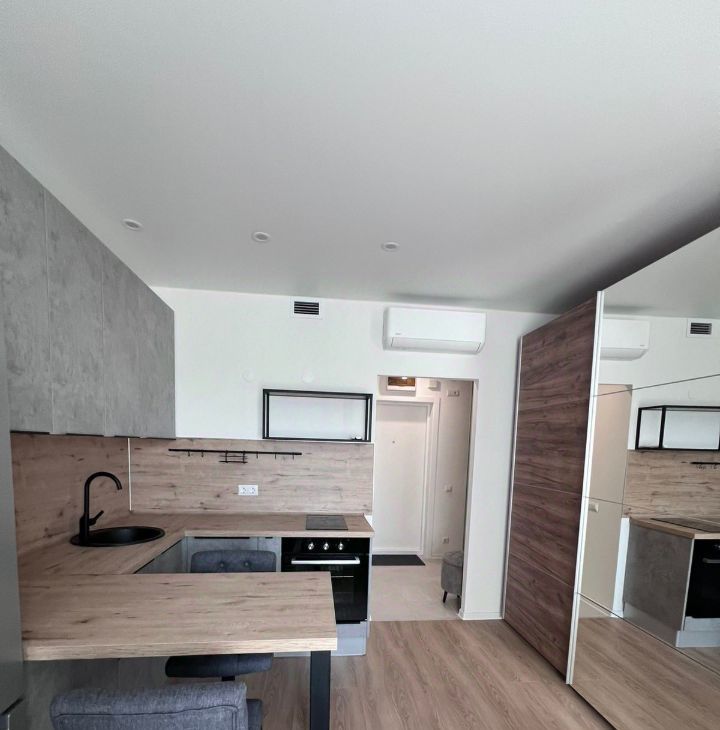 Внимание!!! ВОЗМОЖНА РЕГИСТРАЦИЯ нанимателя в квартире по дополнительной договоренности с собственником. Новый жилой комплекс ЖК"Бусиновский парк". Рядом метро Ховрино и D3 Ховрино. ЖК имеет свою огороженную благоустроенную территорию. На первых этажах комплекса есть магазины, кафе, службы быта, аптеки. Вход на территорию, в подъезд и на этаж по коду. Всё под видеонаблюдение. В подъезде красивая входная группа . Сдаю на длительный срок квартиру СТУДИЮ с отличным ремонтом, с современной мебелью и бытовой техникой. В квартире большое панорамное окно- двойной стеклопакет, стены - светлые однотонные обои, полы ламинат+плитка, санузел в плитке до потолка, металлическая входная дверь, КОНДИЦИОНЕР, есть ИНТЕРНЕТ. В квартире грамотно зонировано пространство. Вся мебель и бытовая техника НОВЫЕ: двуспальная кровать с ортопедическим матрасом. два больших шкафа-купе с зеркалами, кухонный гарнитур под единой столешницей, двухкамерный холодильник, варочная панель стекло керамика, духовой шкаф, барная стойка, барные стулья. обувница, вешалка. пуфик. Санузел совмещённый в плитке до потолка с душевой кабиной. под раковиной тумба, полотенцесушитель, стиральная машина автомат. Есть свободное место для рабочего стола. Квартира очень комфортная. Соседи приличные. Показы в любое удобное для ВАС время по предварительной договорённости.