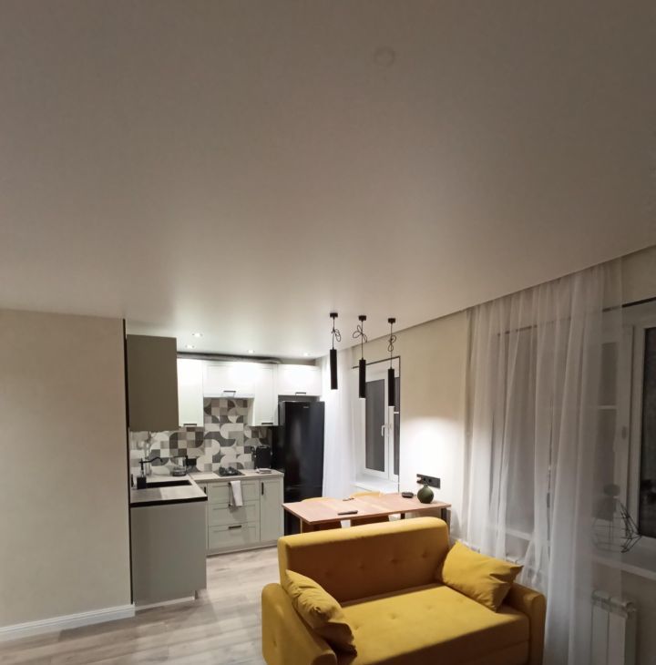 Квартира расположена на 4 этаже панельного дома. Окна смотрят во двор, никаких окон соседей напротив. В наличии открытая парковка во дворе. Из мебели предусмотрено - всё, техника — холодильник, микроволновая печь с грилем, стиральная машина, телевизор, пылесос и чайник. Просторная кухня объединена с гостиной, что создает уютное пространство для отдыха.