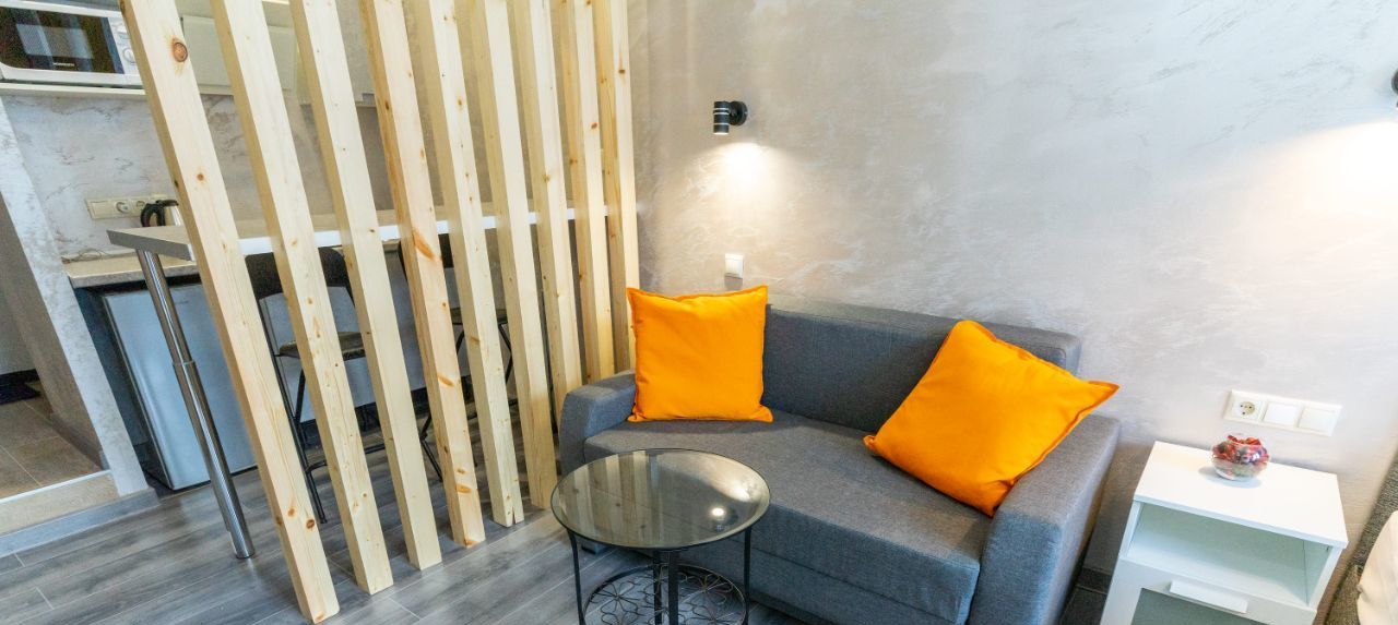 Квартира полностью готова к проживанию: в комнате и на кухне есть вся необходимая мебель.