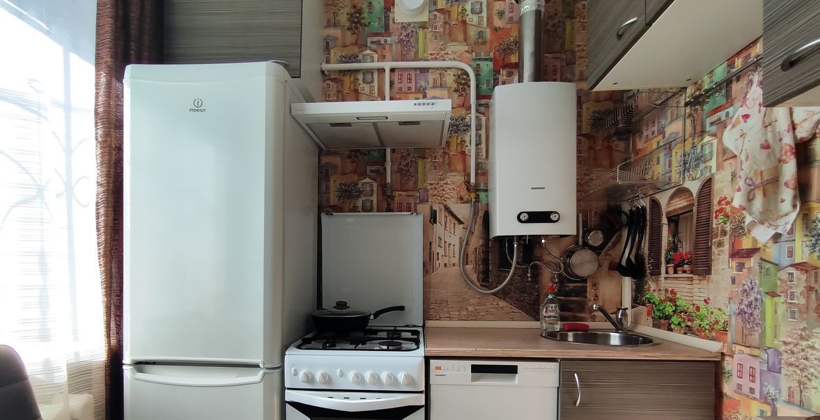• Кухня. Удобный стол, 2 мягких полубарных стула, холодильник с морозилкой, микроволновка, электрический чайник, газовая плита (духовка + гриль), посудомоечная машина, газовая колонка (нет зависимости от летних отключений воды!)