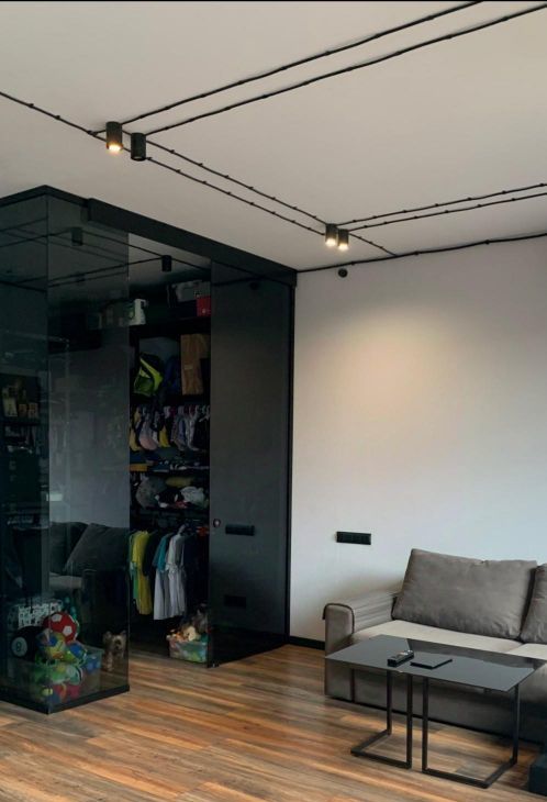 Просторная гардеробная из каленого стекла, которую легко переоборудовать в спальню.