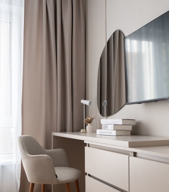 Рабочая зона: удобный письменный стол — для тех, кто работает или занимается творчеством.