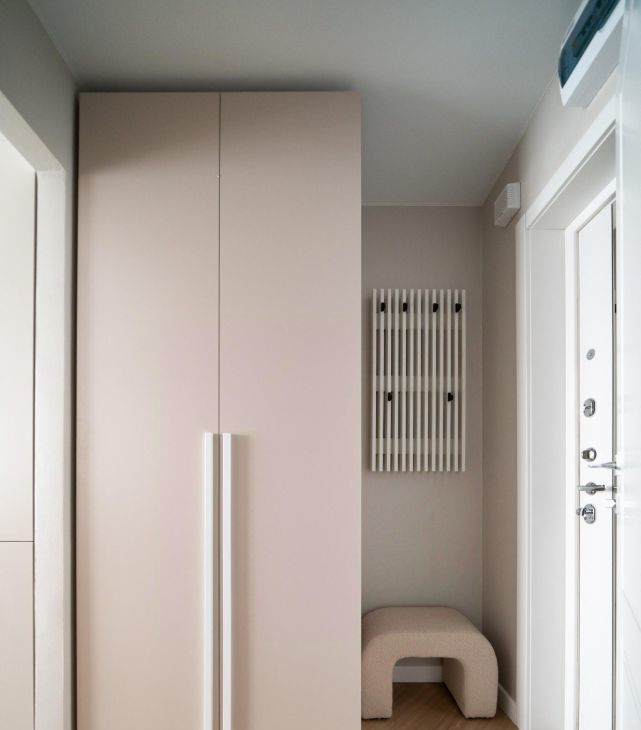 Хранение: просторный гардероб, комод, шкаф в зоне прихожей, стеллаж