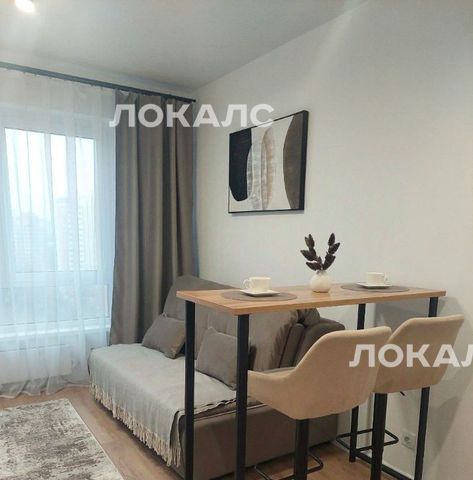 Предлагаем в аренду АБСОЛЮТНО НОВУЮ уютную квартиру-студию в ЖК Кольская 8. Вы будете первыми жильцами в этой квартире. Сделан стильный ремонт, создающий атмосферу комфорта и гармонии. Полностью оборудована всей необходимой новой мебелью и техникой для комфортного проживания. Раскладной диван превращается в шикарную двуспальную кровать. Для Вас новый набор тарелок, сковорода, кастрюля; Утюг с гладильной доской. Кондиционер. Из окна открывается панорамный вид на Москву.