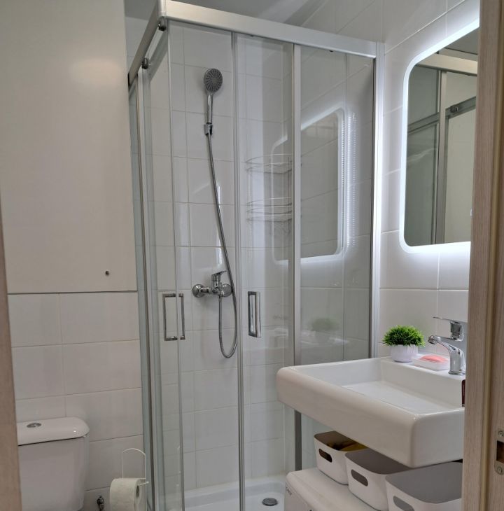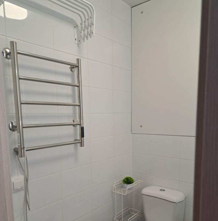 -Санузел: совмещенный, душевая кабина, есть навесная сушилка для белья.