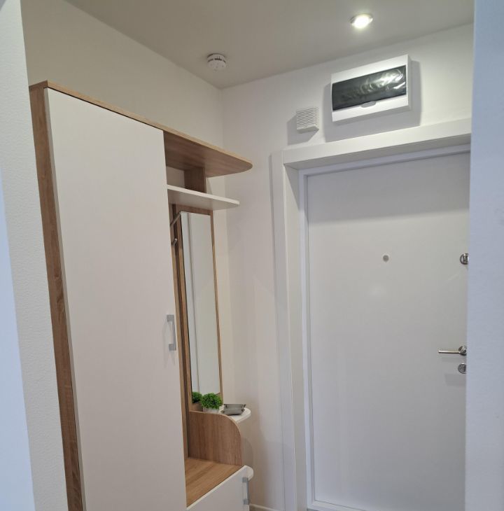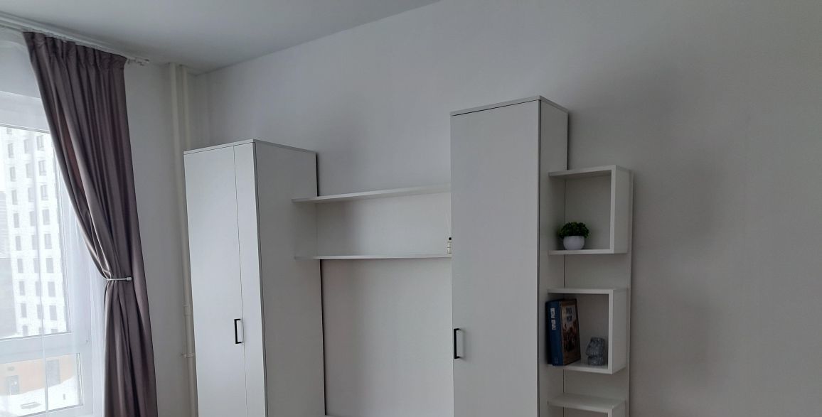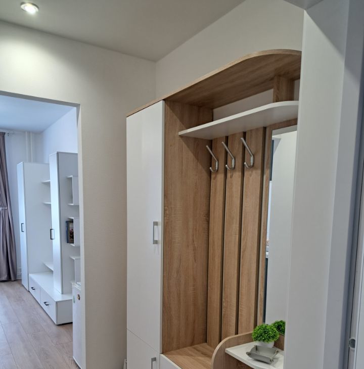 - Мебель: все новое - удобный диван, стильная кухня, отдельно стоящий шкаф для одежды, прихожая с закрытым шкафом.