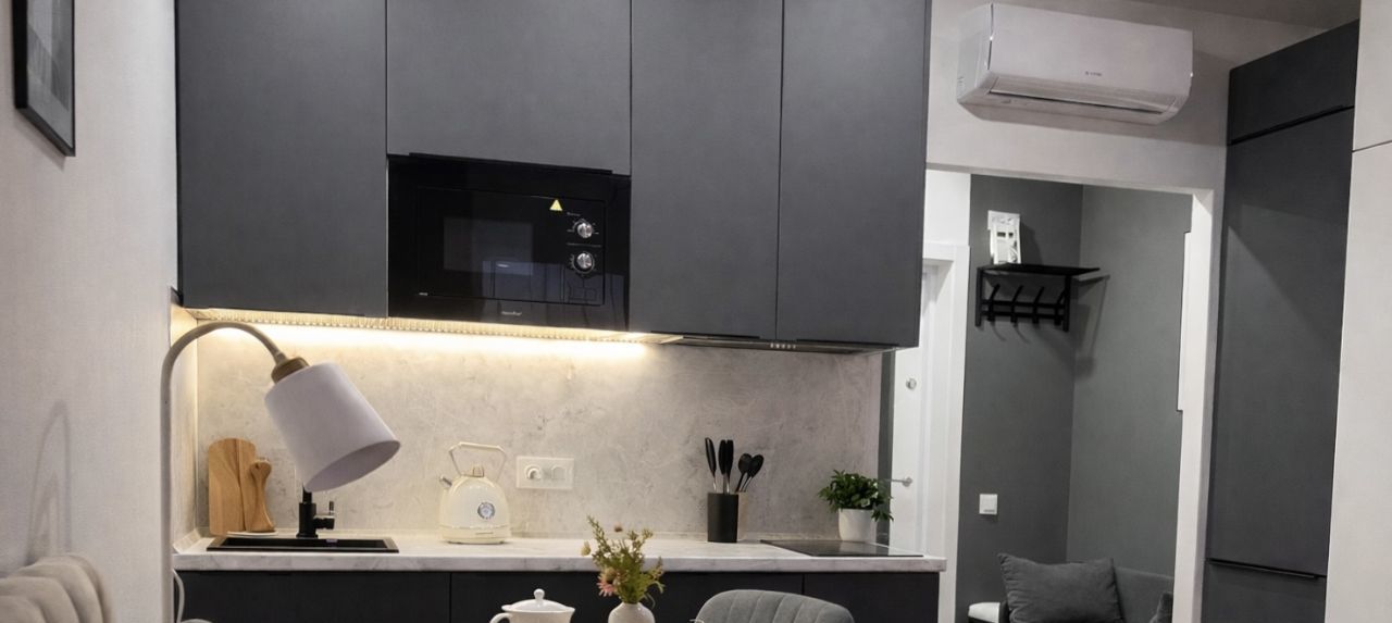 Студия укомплектована всей необходимой мебелью и техникой для комфортной жизни: