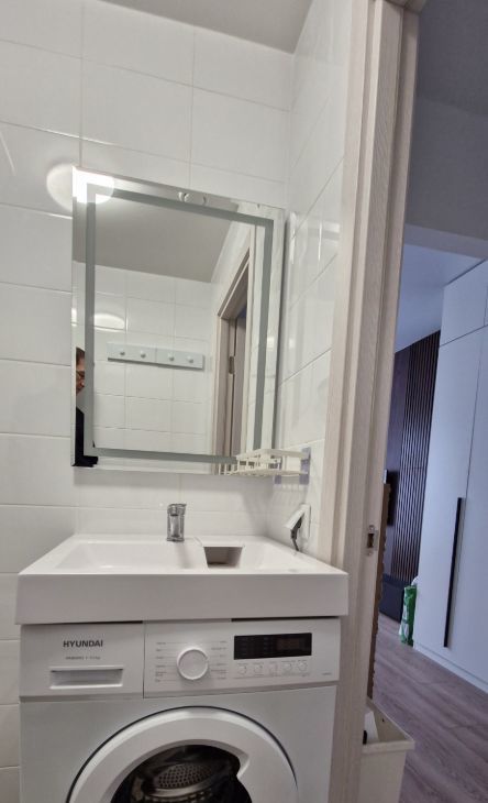 Она укомплектована новой мeбeлью, бытoвой техникой: кондиционер, стиральная машина, телевизор с диагональю 50, варочная панель, встроенный холодильник.