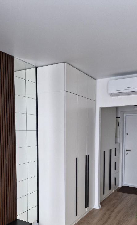 Много мест для хранения: большие шкафы в прихожей и комнате, диван-кровать.