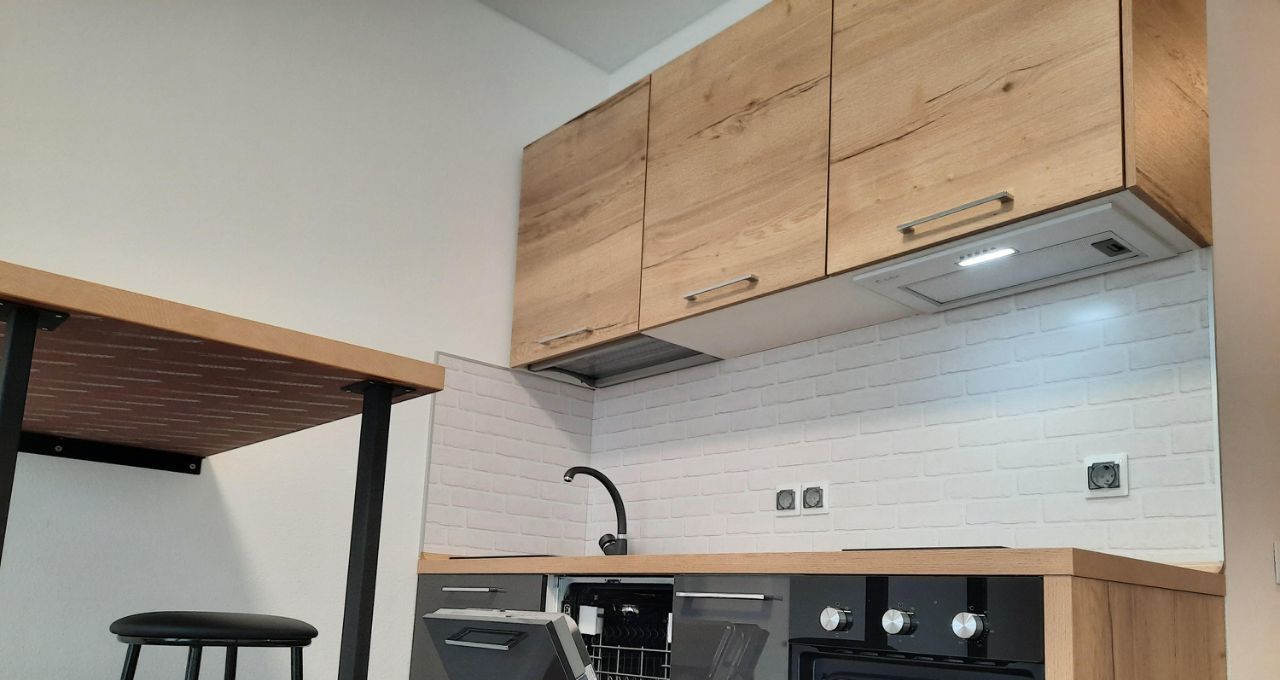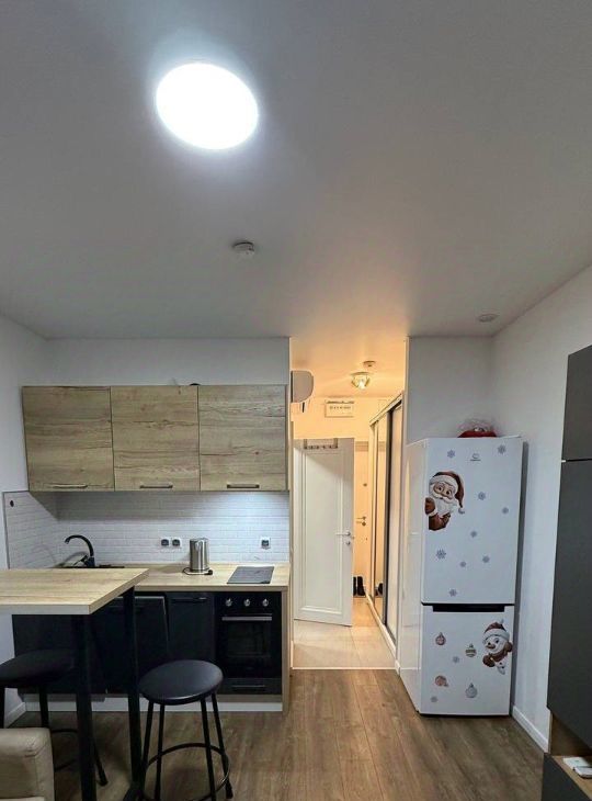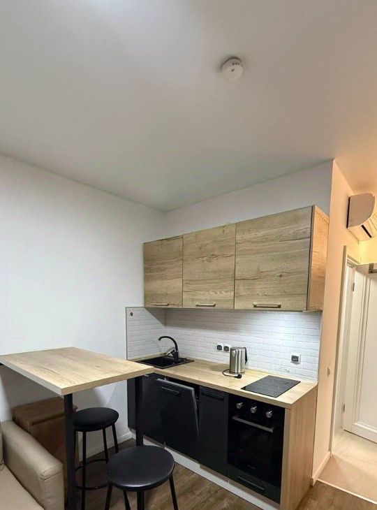 Уютная квартира с качественным ремонтом, оснащенная комфортной мебелью и бытовой техникой. Кухонный гарнитур со встроенной варочной панелью, духовым шкафом, вытяжкой и посудомоечной машиной; набор посуды. Барная стойка с высокими удобными стульями. Диван. Модульная стенка. Плазменный телевизор. Сплит-система. Вместительный шкаф-купе в коридоре. Санузел с новой душевой кабиной, стиральная машина. Интернет, Wi-Fi роутер, цифровое телевидение. Есть балкон.