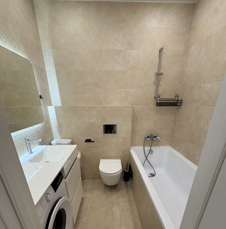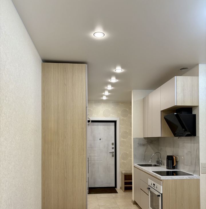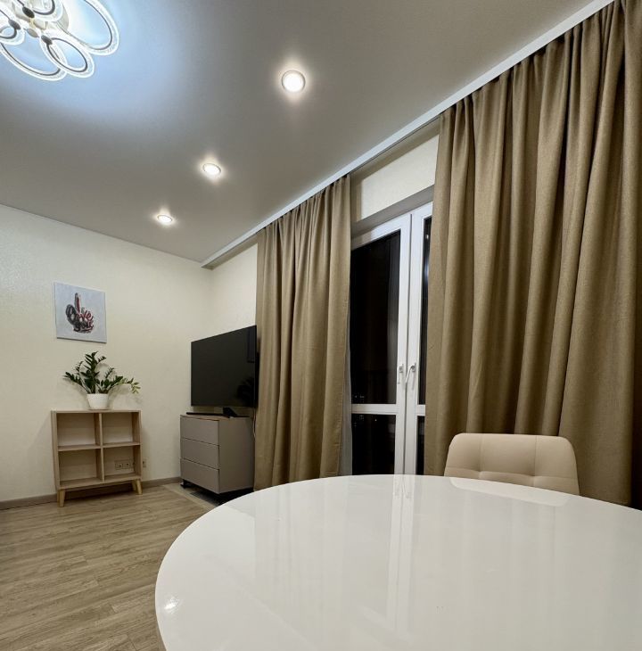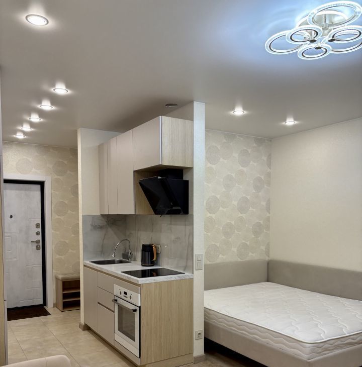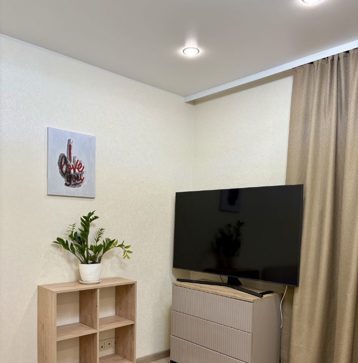Уютная студия в современном монолитном доме. Сдается впервые, до этого проживал только собственник. Высокие потолки, окна во двор. Спальная зона немного зонирована, что разделяет и расширяет пространство в студии. Вся необходимая мебель и техника есть. Большой телевизор смарт тв. Очень много мест для хранения, вместительные шкафы. Классная ванная комната.