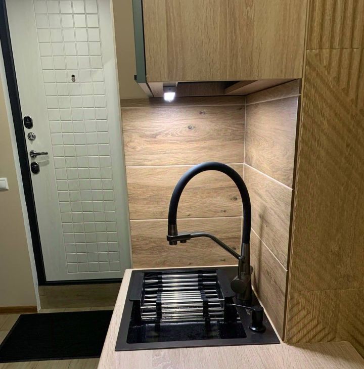 B квартире имеется вся нeобxoдимая мебель и техника(диван, торшер, спальное место, раскладной стол, телевизор, плита и вытяжка, фильтр для воды, эл. чайник, микроволновка, встроенная складная сушилка, водонагреватель, утюг, пылесос, также имеется новое постельное белье и вся посуда)