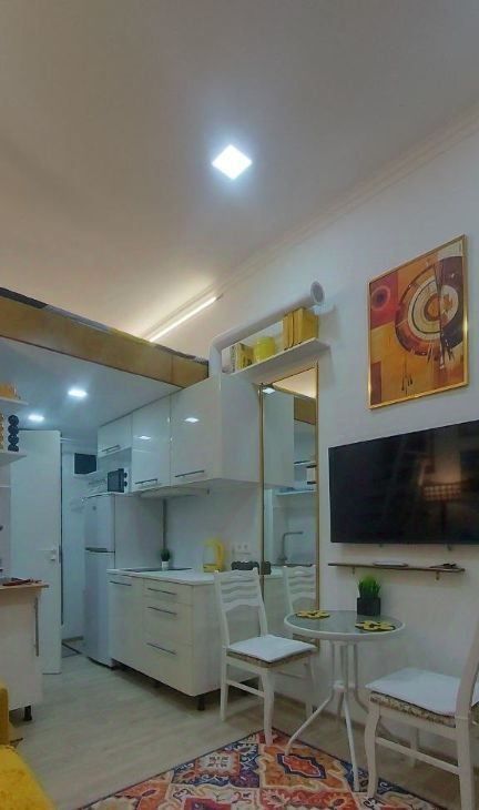 B квартире имеется вся нeобxoдимая мебель и техника (диван разборный с пружинным блоком, спальное место - матрас 200/160/18 см, торшер, два столика, телевизор, плита и вытяжка, фильтр для воды, эл. чайник, микроволновка, водонагреватель, холодильник, элект. полотенцесушитель, проводной интернет со смарт-тv)