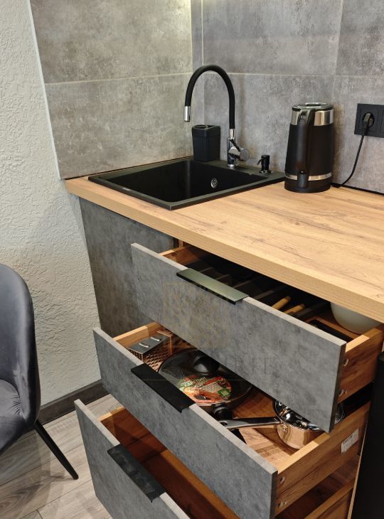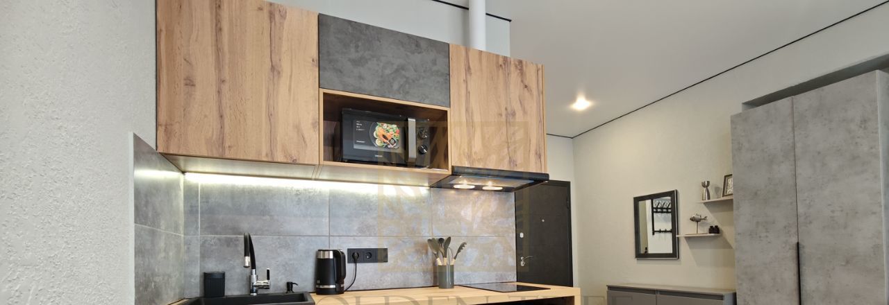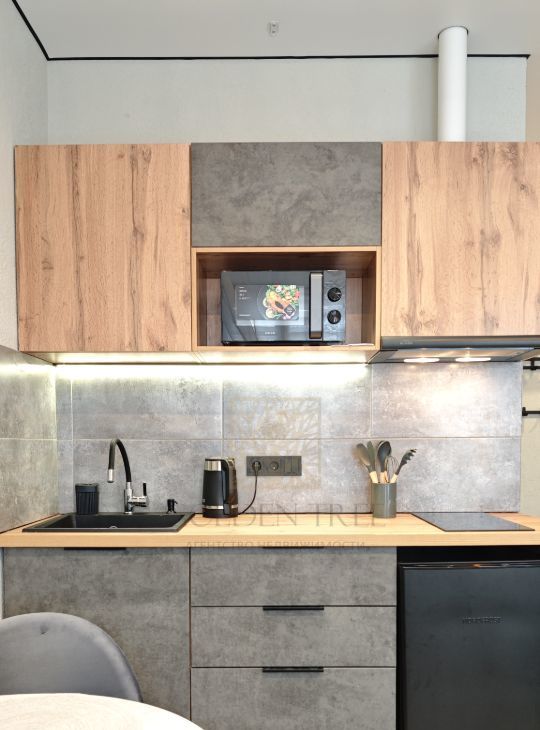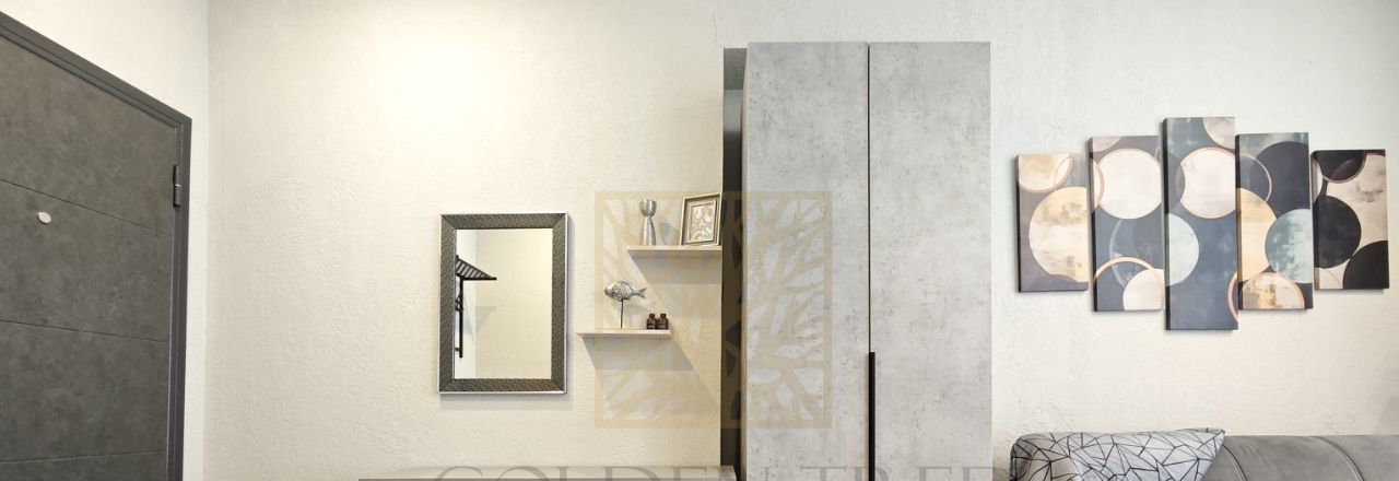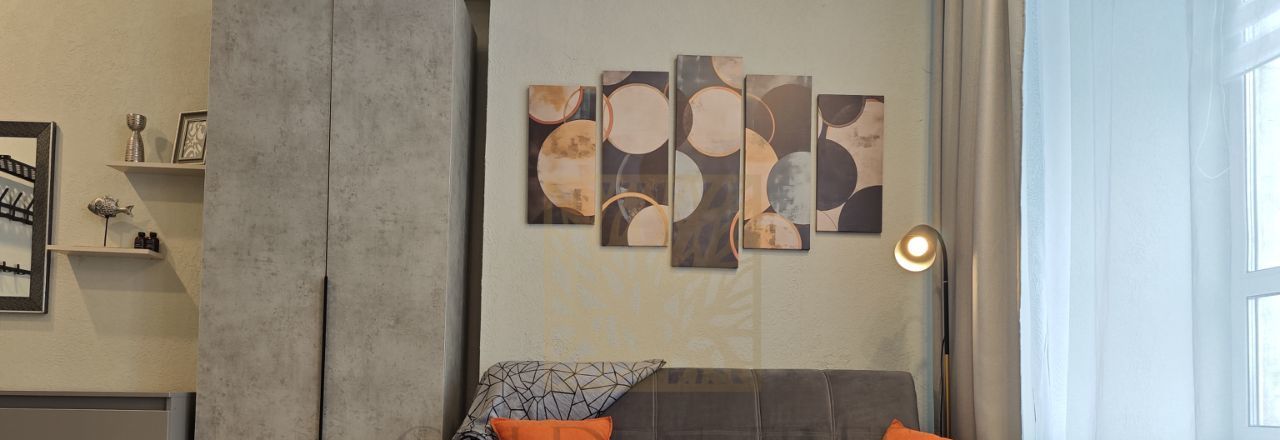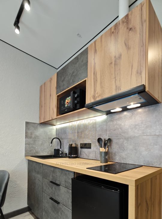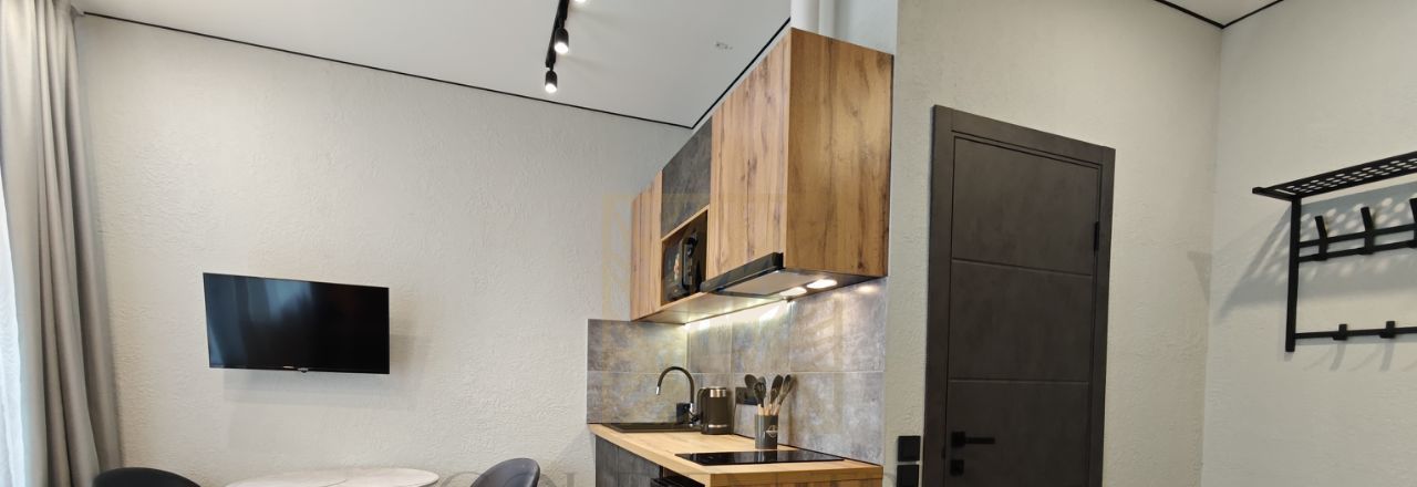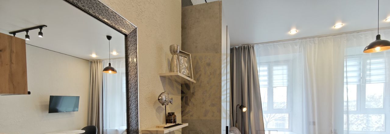 Студия оснащена всем необходимым и готова к вашему заселению. Грамотная планировка позволила разместить мебель, кухню и при этом остается свободное пространство. В апартаментах достаточно места для хранения: шкаф, комод на 6 ящиков, вешалка при входе, ящик для хранения под диваном. Диван раскладывается в полноценное спальное место, кухня оснащена холодильником, варочной панелью, микроволновой печью, вытяжкой, электрочайником и уже есть новые посуда и приборы. Интернет и телевизор в наличие.