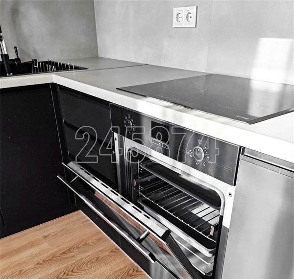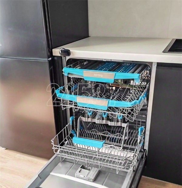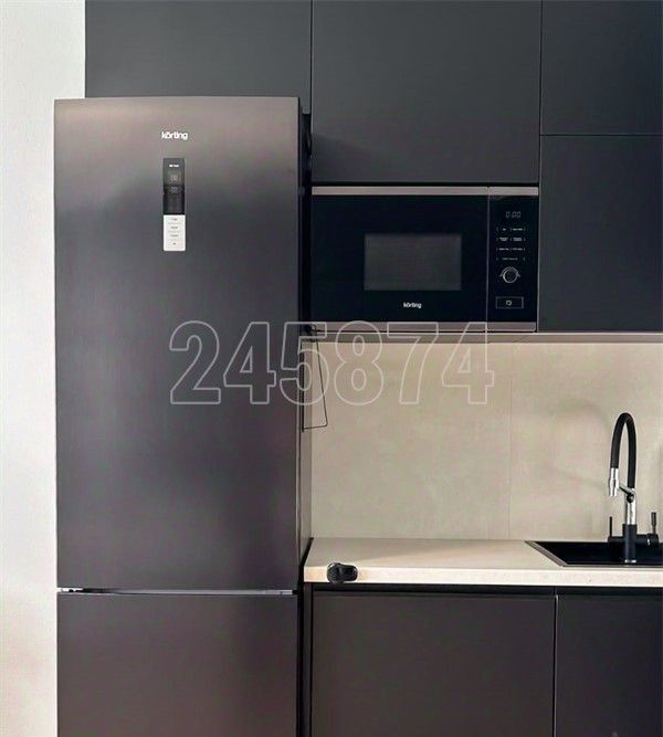 большой холодильник с морозильной камерой, посудомоечная машина, духовой шкаф и индукционная плита, микроволновая печь, стиральная машина с функцией сушки, кондиционер, робот-пылесос.