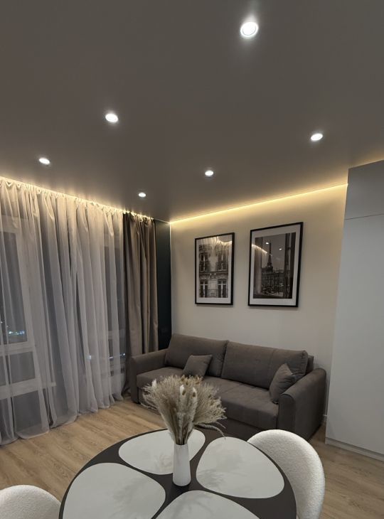 Сдам на длительный период стильную, комфортную, уютную и продуманную до мелочей красивую светлую студию. Дизайнерский ремонт, который изначально делала для себя, поэтому предусмотрено все необходимое для комфортной и удобной жизни. Здесь есть много мест для хранения, вся необходимая техника, включая проточный водонагреватель (теперь вам не страшны ежегодные отключения г.в.), аква стоп (вы защищены от затоплений), система фильтрации для питьевой воды (экономия ваших средств) и базово посудомойка, стиралка и духовка с микроволновкой 2в1 и вытяжка.