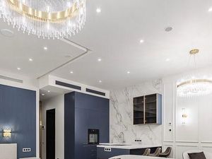 Общая площадь составляет 42,6м2, при этом потолки достигают 3,68 метра, а панорамное остекление добавляет света и объема пространству. Благодаря нише апартамент легко зонировать на приватную зону для сна и гостевое пространство.