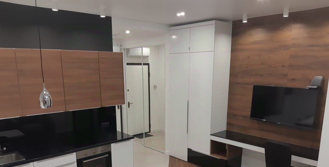 ЖК "Царская площадь" 1-комн. студия полностью оборудована всей техникой: стиральная машина, душевая кабина, кондиционер, посудомоечная машина, духовой шкаф, холодильник, варочная панель, вытяжка, СВЧ, телевизор Smart TV, лоджия с сушилкой для белья, бойлер горячей воды 50 литров, стальная входная дверь для безопасности. Круглосуточная охрана и система контроля доступа. Фитнесс клуб с бассейном в доме. Подземный паркинг.