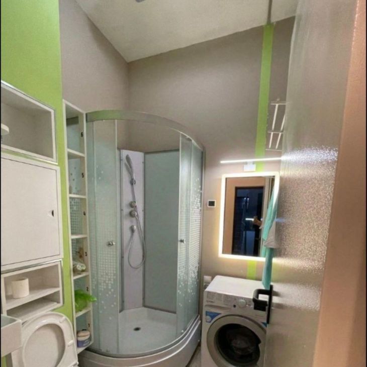 Душевая кабина и стиральная машина также гостевая, на 6 арендаторов, находится на другом этаже.