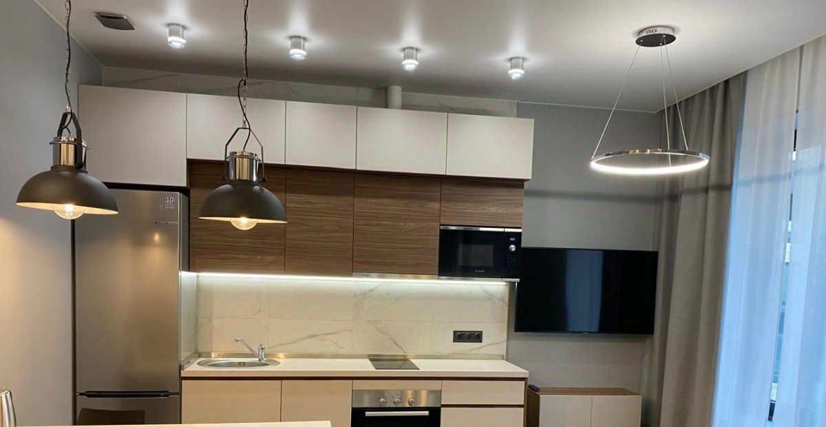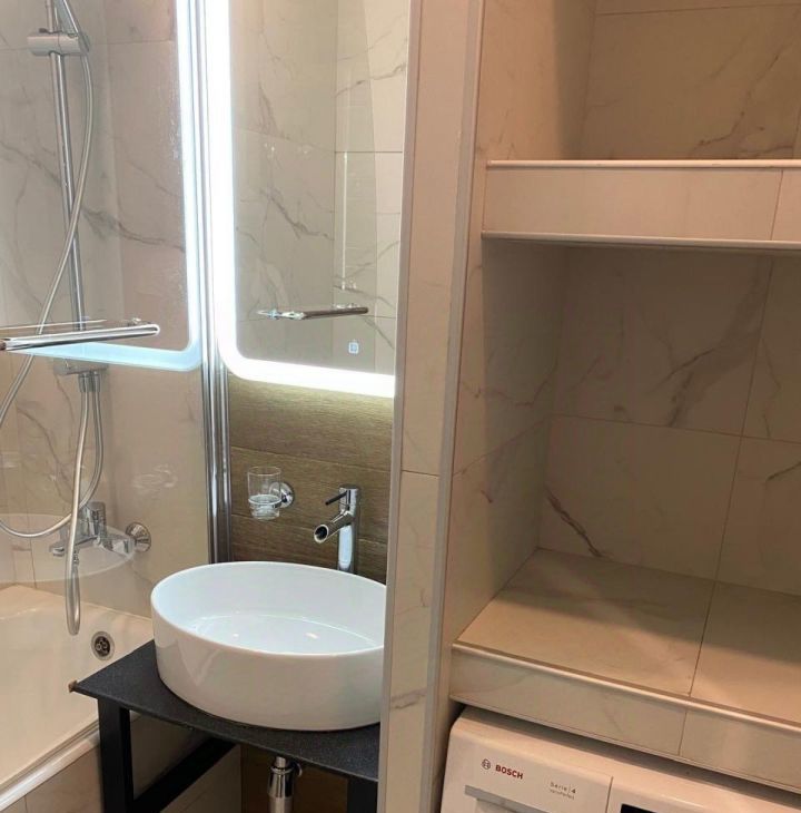 В квартире выполнен современный дизайнерский качественный ремонт с использованием премиальных материалов. Много места для хранения.