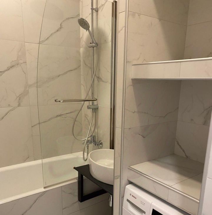 Квартира оборудована всей необходимой бытовой техникой Bosch: посудомоечная машина, варочная панель, духовой шкаф, вытяжка, холодильник, посудомоечная машина. Стиральная машина. Система кондиционирования. В коридоре установлен домофон.