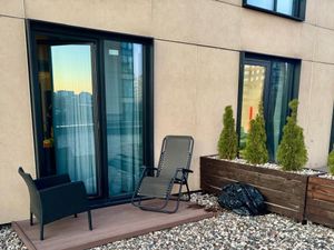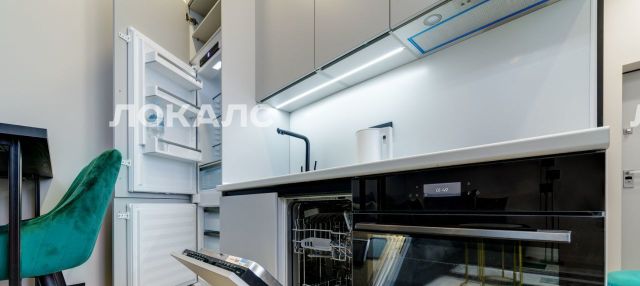 В квартире высокие потолки, встроенная мебель, вся техника - посудомоечная машина, духовка со встроенной микроволновкой, холодильник, индукционная панель, стиралка с сушкой, кондиционер. Техника ведущих брендов - Bosch, Liebherr, Electrolux.