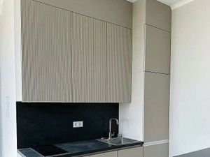 В квартире высокие потолки, встроенная мебель, вся техника - посудомоечная машина, духовка со встроенной микроволновкой, холодильник, индукционная панель, стиралка с сушкой, кондиционер. Техника ведущих брендов - Bosch, Liebherr, Electrolux.