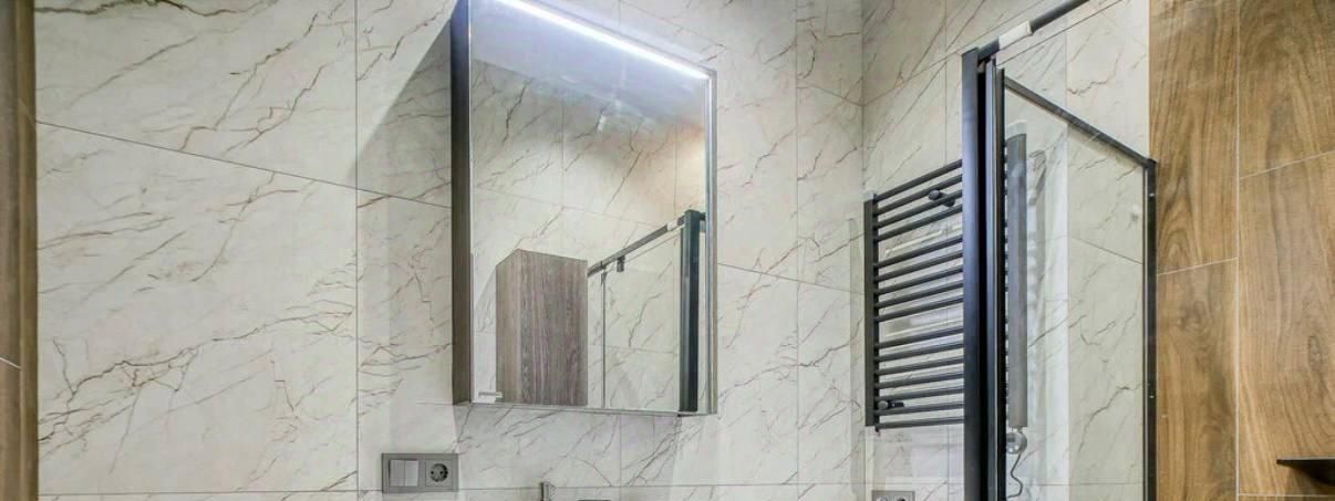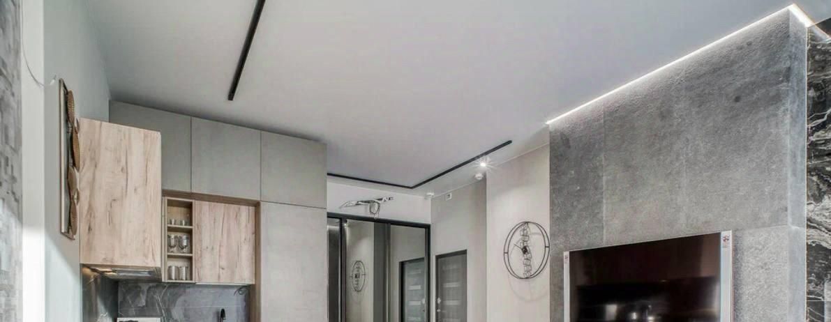 Студия с дизайнерским ремонтом полностью готова к проживанию. В комнате и на кухне есть вся необходимая мебель, а также современная бытовая техника: кондиционер, холодильник, посудомоечная машина, телевизор и стиральная машина. В объединённом санузле установлена душевая кабина. Окна выходят во двор, поэтому в квартире всегда тихо и спокойно.