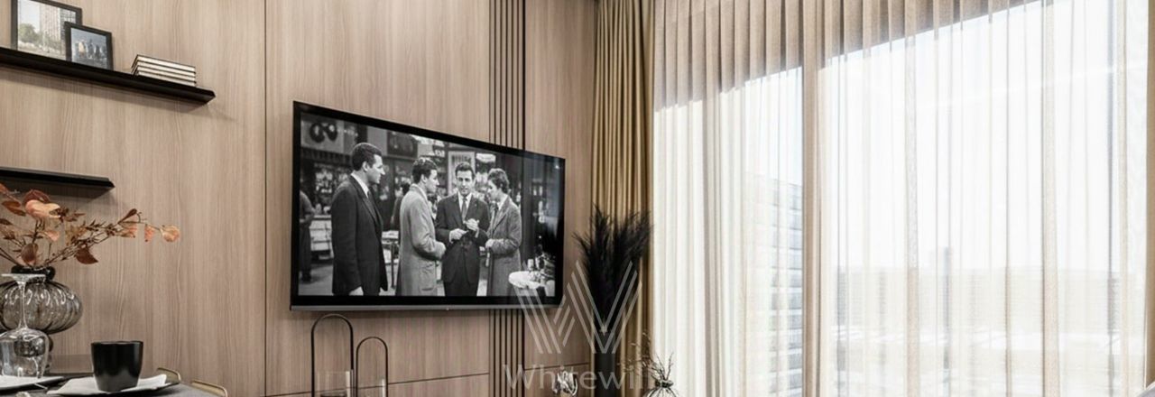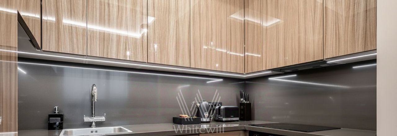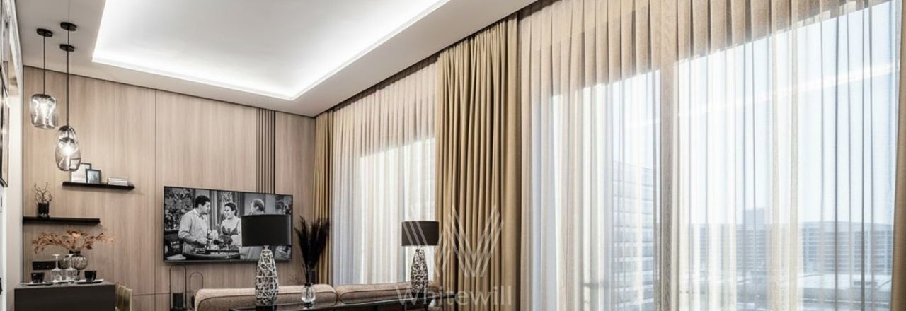 Квартира полностью меблирована и укомплектована бытовой техникой Neff. Кровать с подъёмным механизмом, Смарт-ТВ с голосовым управлением, есть сейф.