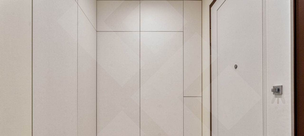 Много мест для хранения вещей. В прихожей и гостиной встроенные шкафы, глубиной 0,6 метра и кровать с системой