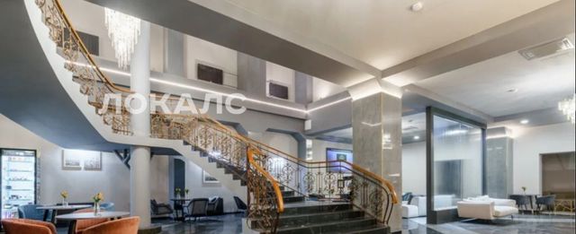 Внутри само здание оформлено в стиле современного модерна. Элегантная входная группа, роскошная винтовая лестница, зона отдыха с мягкими и удобными диванами и креслами для резидентов комплекса и их гостей.