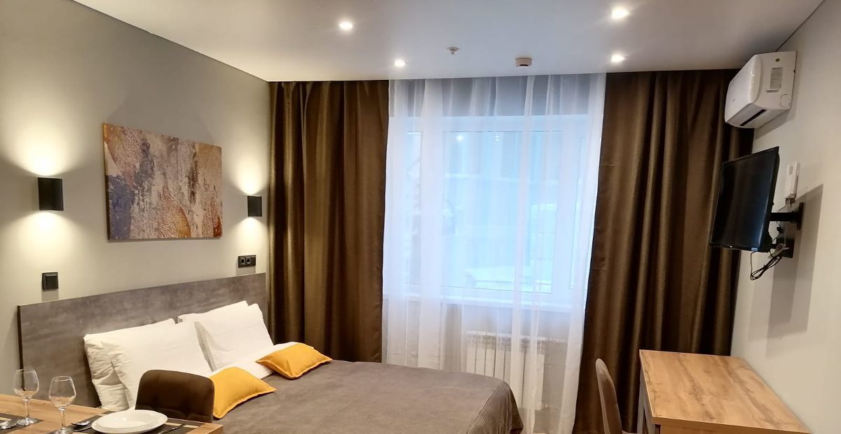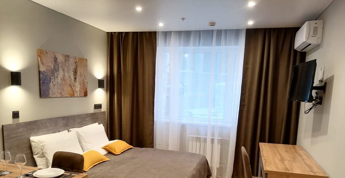 сдаю прекрасный апартамент с евроремонтом мебелью и техникой в гостинице *Салют* на длительный срок. стоимость аренды 70.000 в месяц плюс свет вода по счётчикам и интернет. При заселении оплачивается первый месяц плюс 50% залог плюс 50% комиссия Агента.
