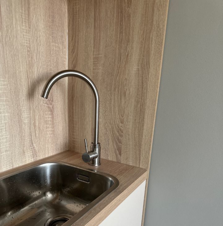 • Техника: Кондиционер для комфорта в любую погоду, большой холодильник с морозильной камерой, телевизор и стиральная машина, грамотно встроенная в ванной комнате.