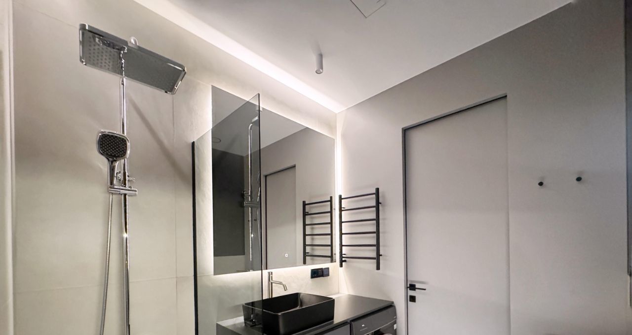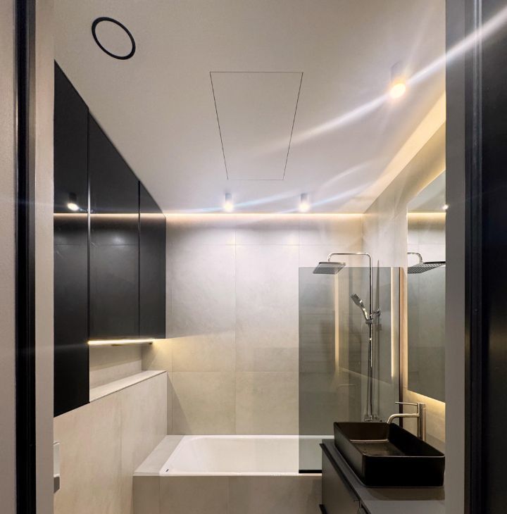 - Совмещённый санузел с теплыми полами, ванна для релаксации, стиральная машинка с функцией сушки.